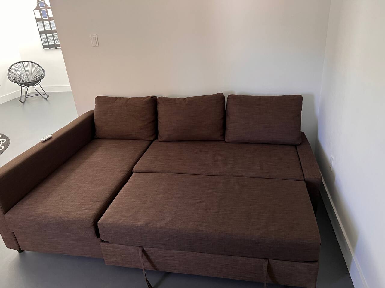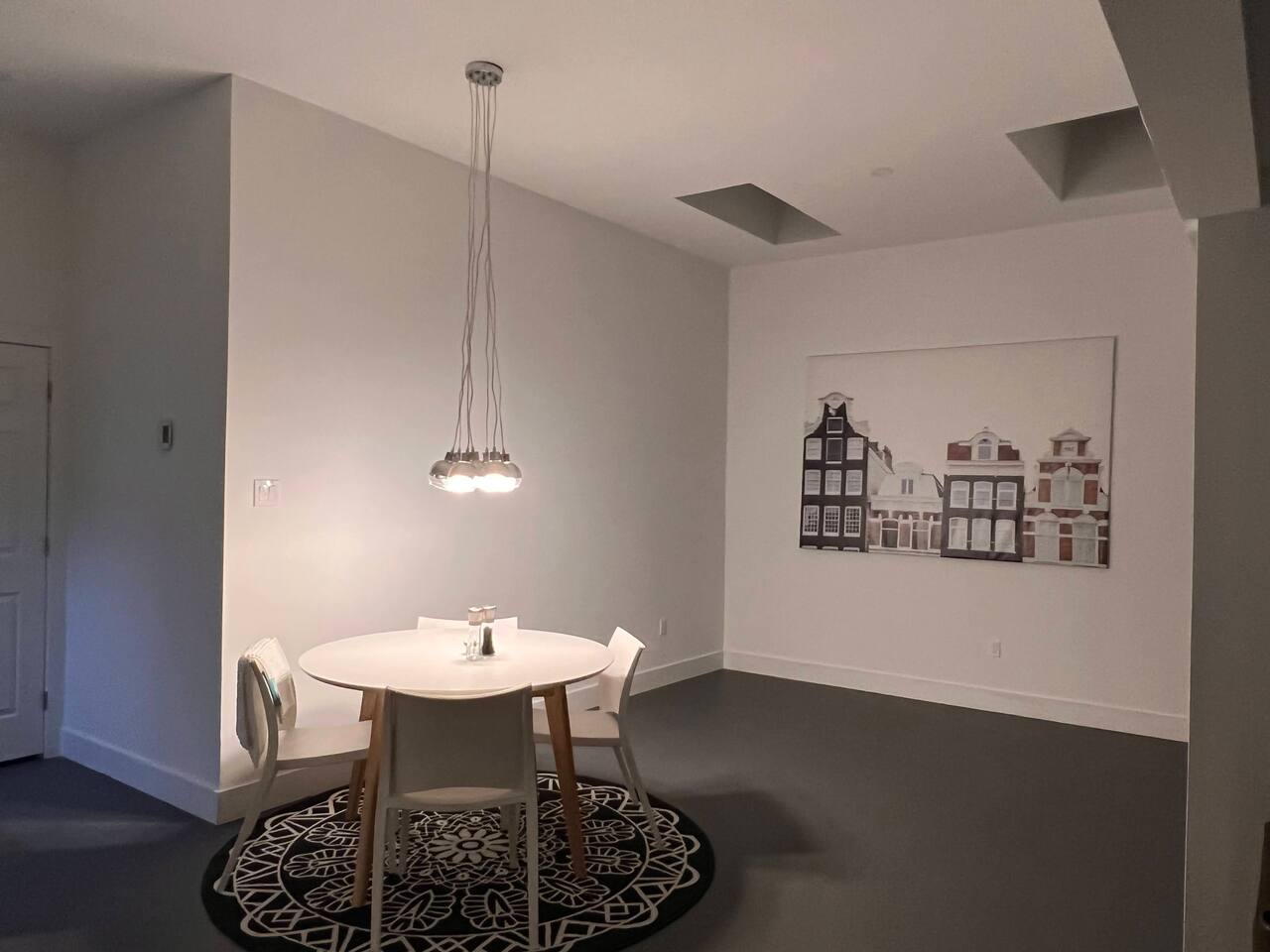 There's an abundance of privacy and space is beautiful with lots of natural light that comes in through the large skylights. The 10 foot high ceilings are pretty amazing the space is open and inviting.