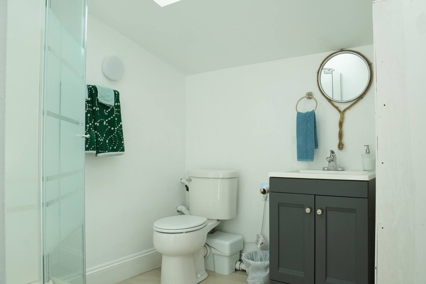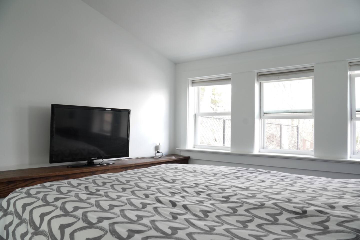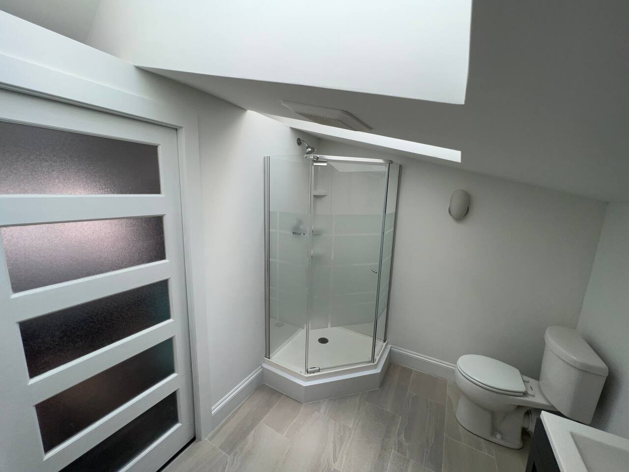 Wonderful unique space filled with lots of light . There is a double bed and is a private bathroom in the loft. Think of a hotel room located in a quiet residential home. There’s a microwave fridge and coffee maker.